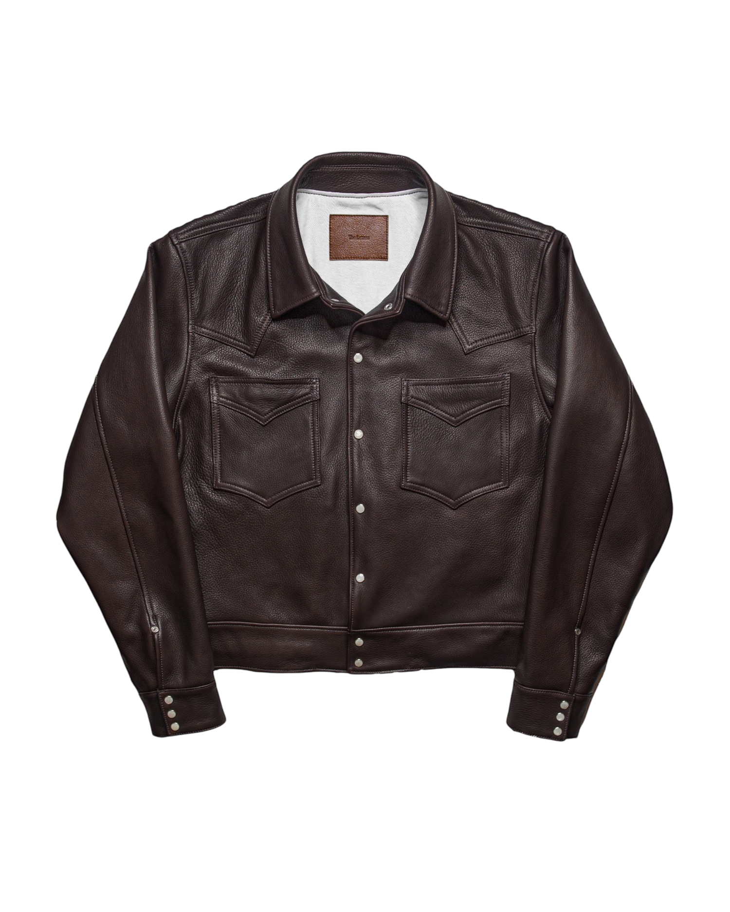 The sleeve openings are riveted with the END CUSTOM JEWELLERS production logo, and the back of the front pockets are made of sledges with a western pattern.The leather is chrome-tanned from euro goat raw hides, which are rich in flexibility, preservation, heat resistance, and dye coloration, and then nappalaned on the suede side for a w-faced finish.