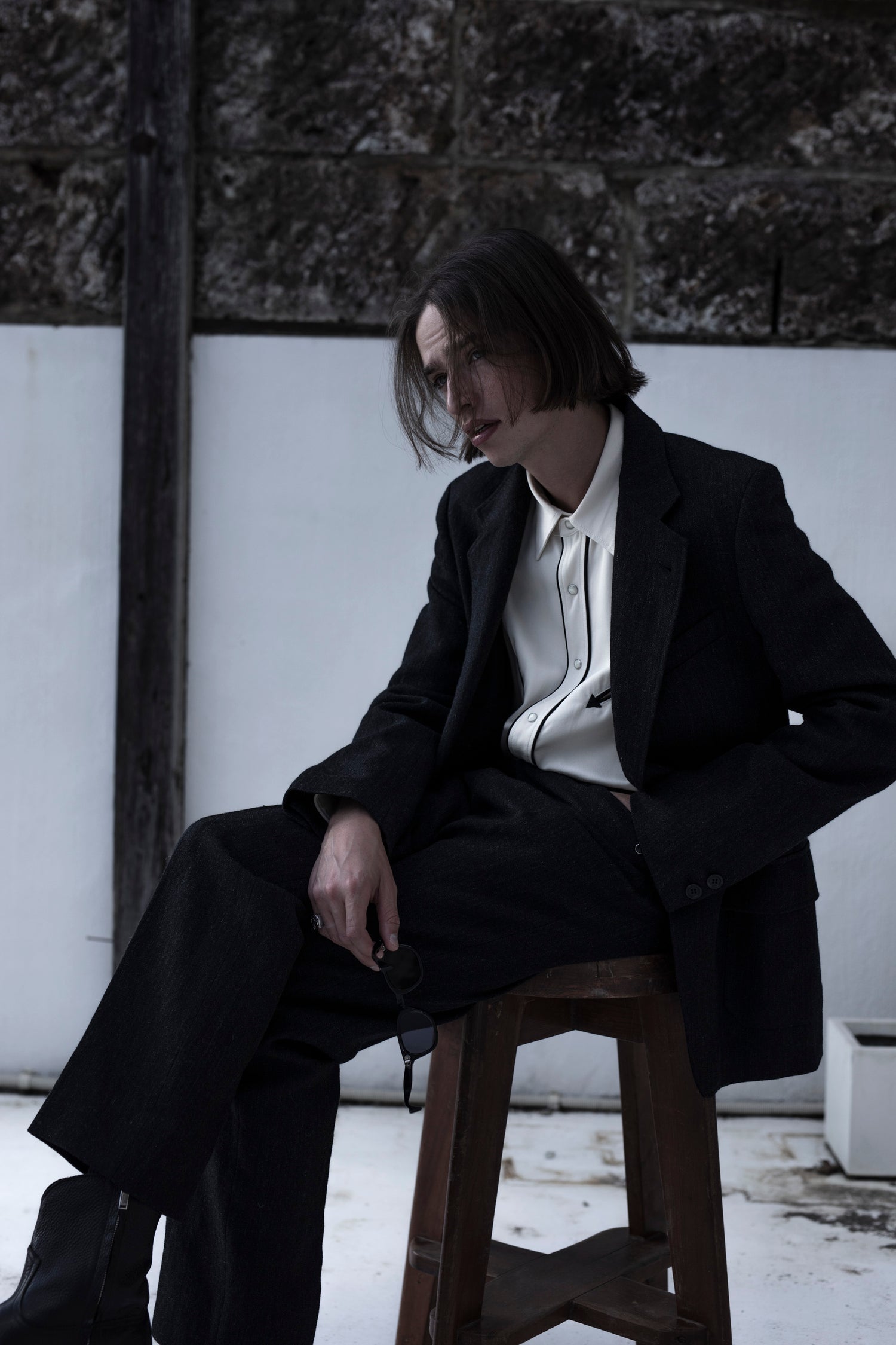The material is dyed viscose rayon, woven with a yarn that is softer than conventional rayon yarn and has a waist, and finished in a vintage-like gabardine with a little thickness and luster that can be used for jackets, shirts, pants, and all other genres.